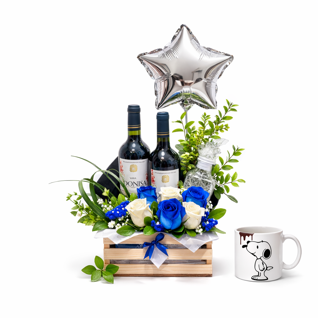 Este exclusivo arreglo floral está compuesto por 12 rosas azules y liliums, que combinan elegancia, frescura y un toque de misterio. El follaje natural resalta la belleza de las flores, mientras que la base de cerámica moderna aporta un acabado sofisticado. Ideal para ocasiones especiales que merecen un detalle distinguido.