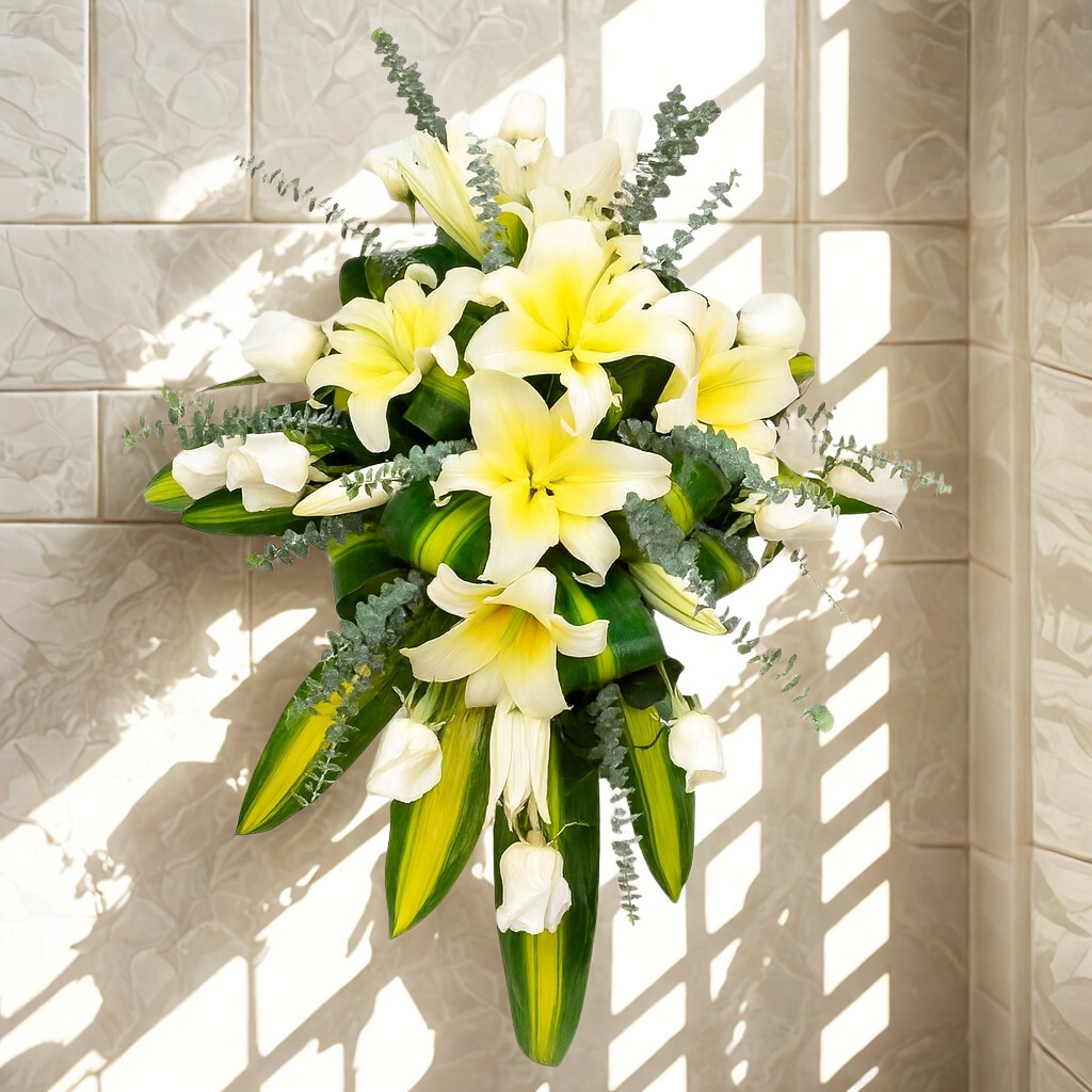 Este arreglo es ideal para expresar condolencias, rendir homenajes o acompañar momentos solemnes con un gesto lleno de sensibilidad.