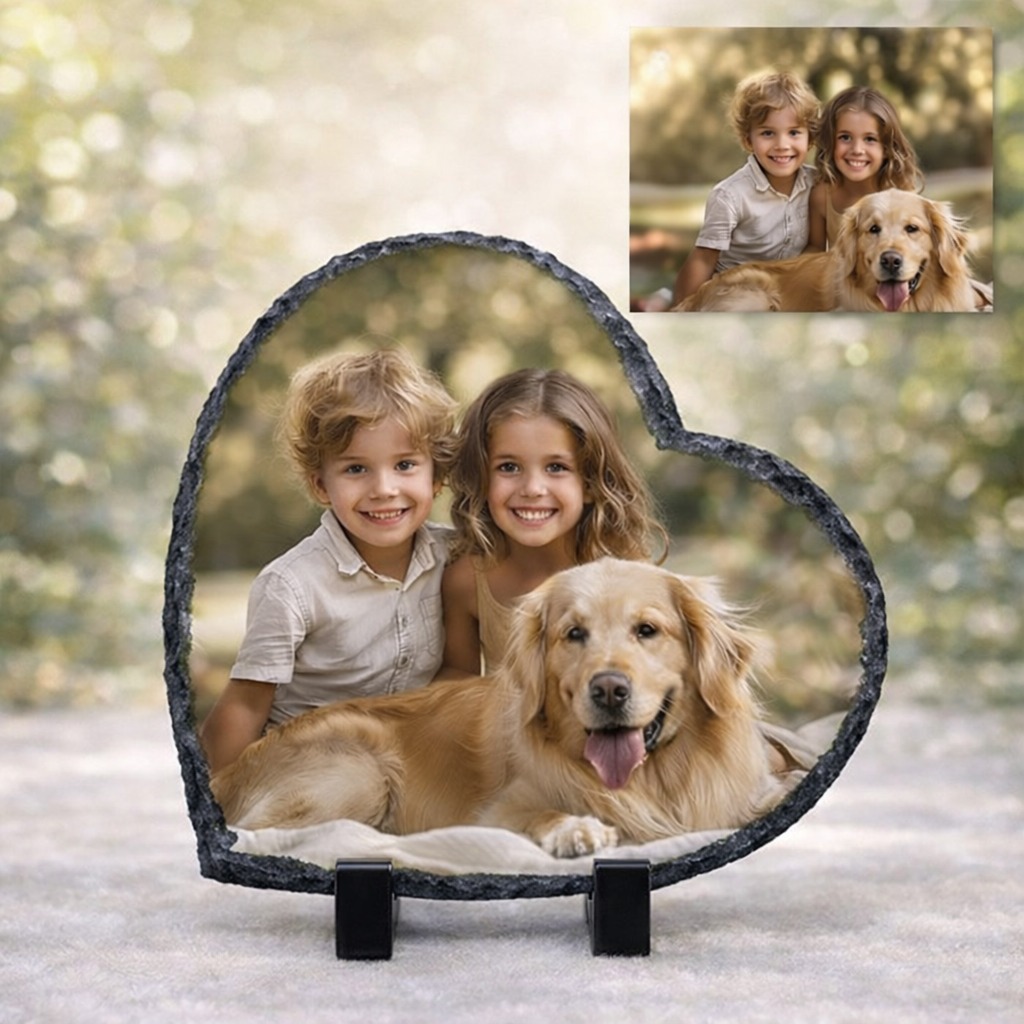 Creamos foto roca sublimada en forma de corazón, personalizada con tus fotografías, nombres y fechas, transformando cada imagen en un recuerdo lleno de significado.