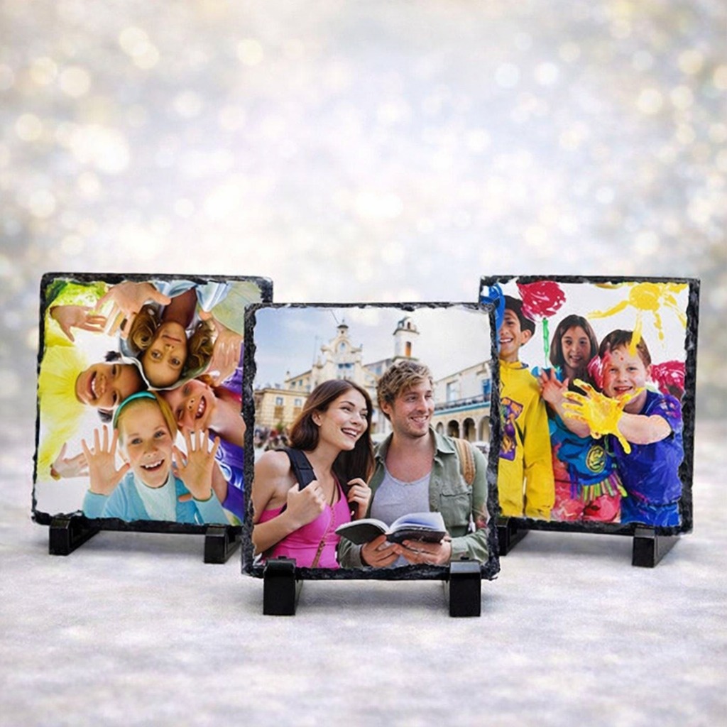 Creamos foto roca sublimada en formato cuadrado, personalizada con tus fotografías, nombres y fechas, transformando cada imagen en un recuerdo lleno de significado.