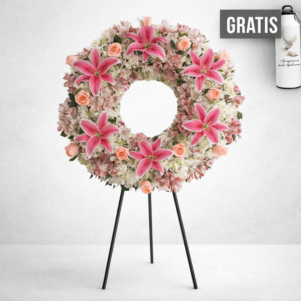 El diseño transmite una profunda sensación de tranquilidad y solemnidad, ideal para velorios, sepelios y ceremonias de despedida, donde se desea expresar afecto y acompañamiento con elegancia y sensibilidad.