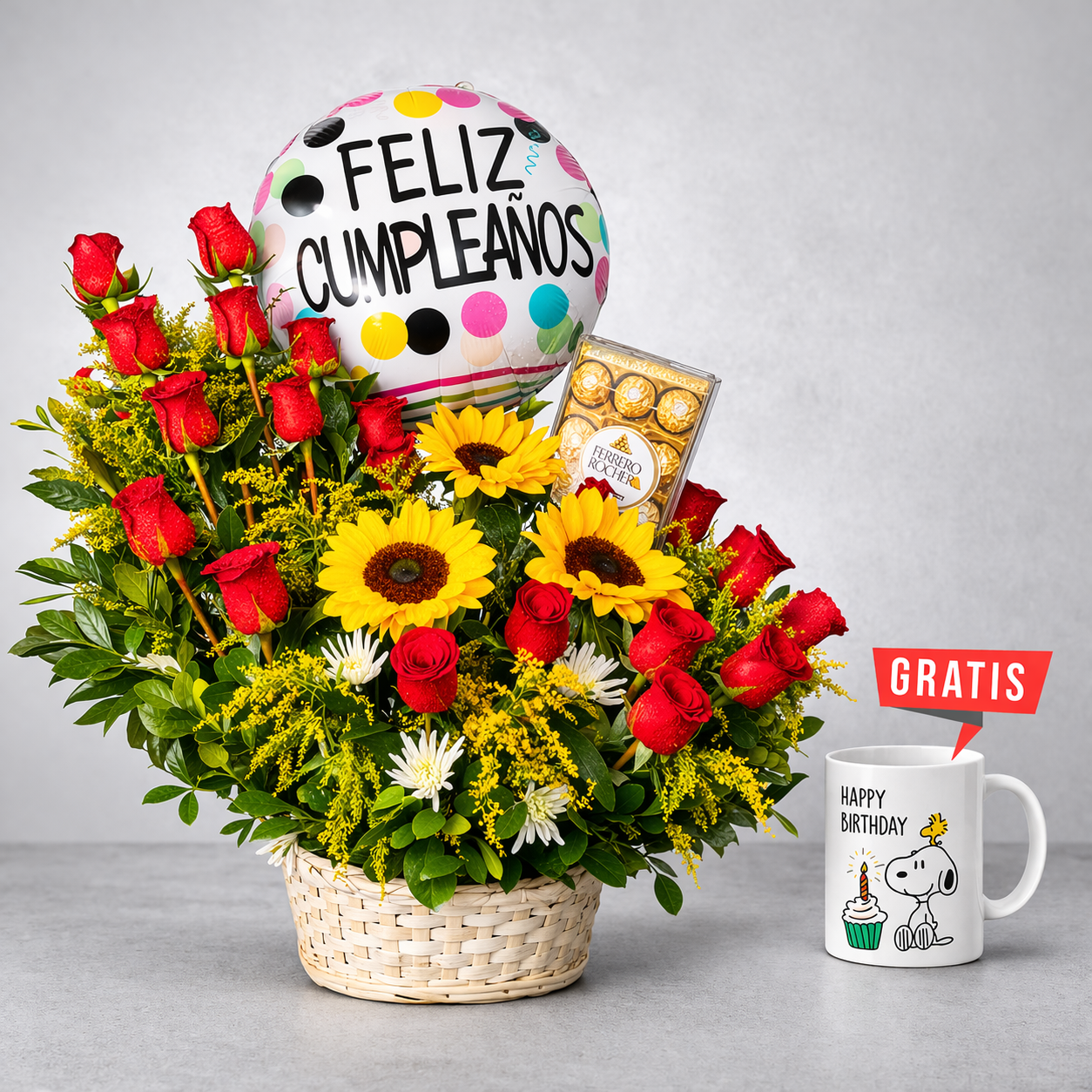 ncantador arreglo floral presentado en una elegante canasta, elaborado con una clásica y romántica combinación de 10 rosas rojas, lilium aromático y follaje fino. Ideal para expresar amor profundo, pasión y elegancia en un detalle inolvidable.