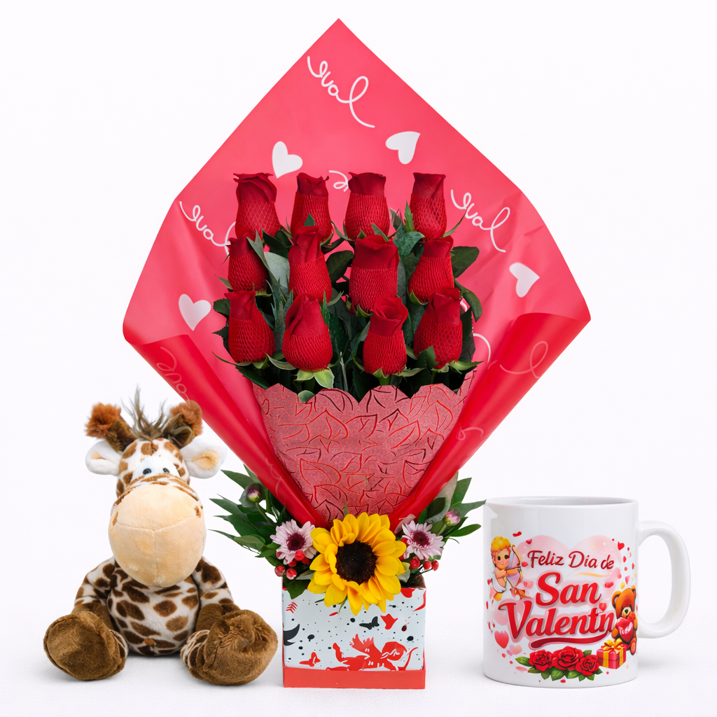 ARREGLO FLORAL AMOR ROJO