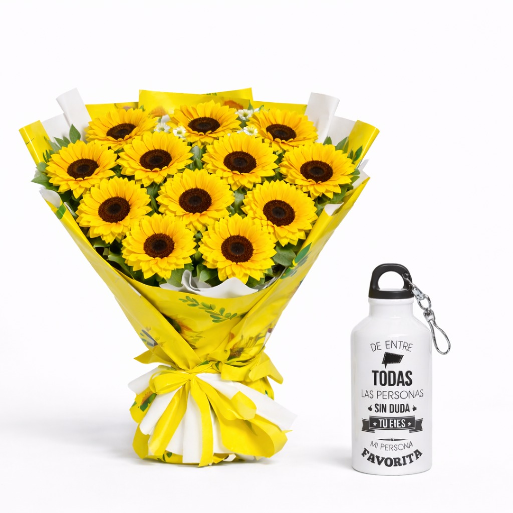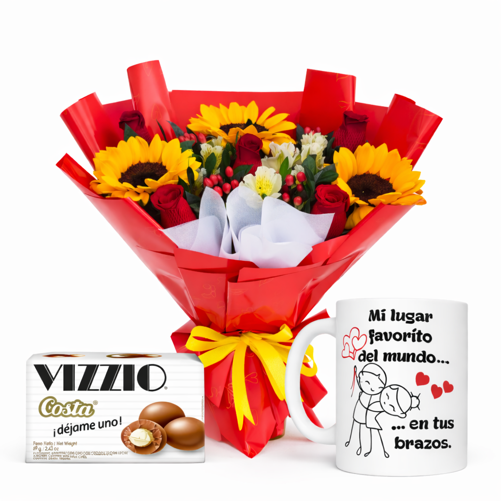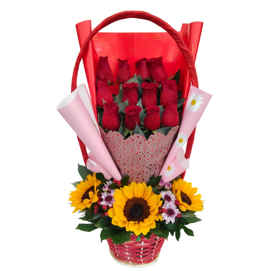 ARREGLO DE ROSAS Y GIRASOLES