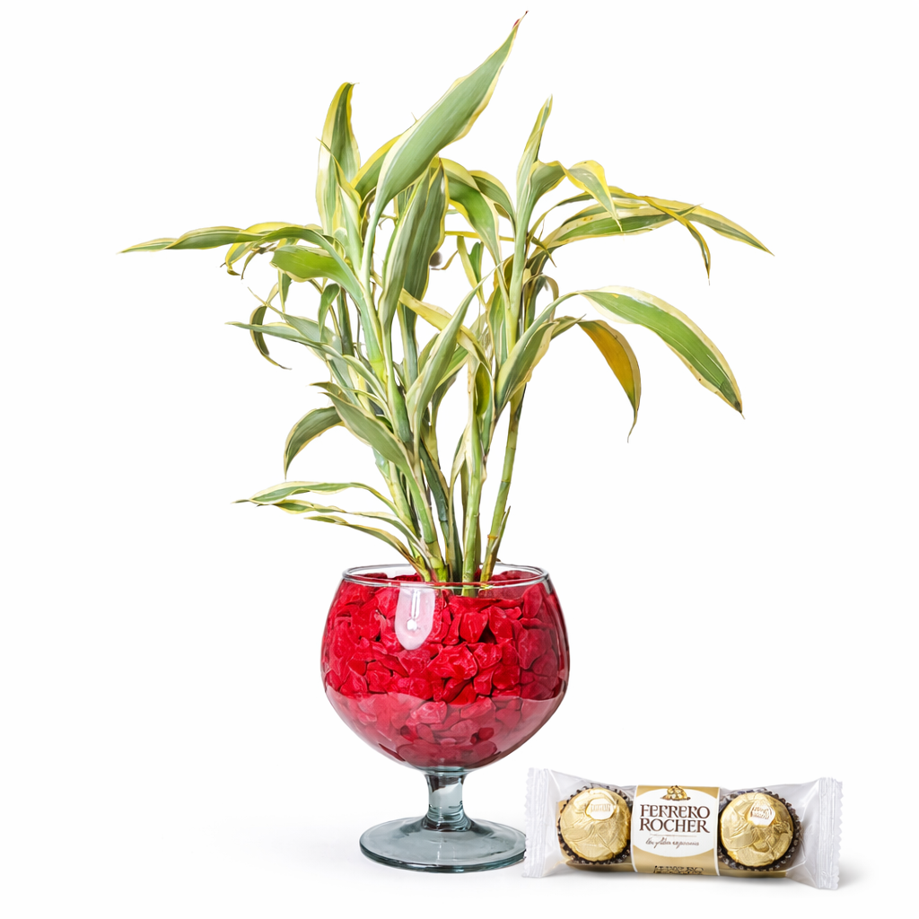 Lindas ramas de bambú sobre base con corazón en el centro.