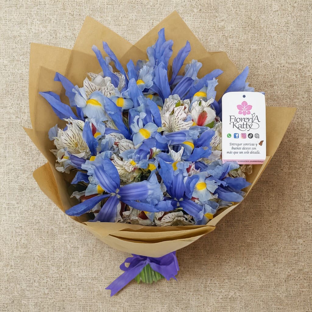 Compuesto por 12 flores de iris y un paquete de astromelias blancas importadas, este ramo transmite serenidad, consuelo y presencia en los momentos más delicados.