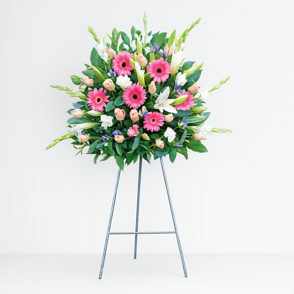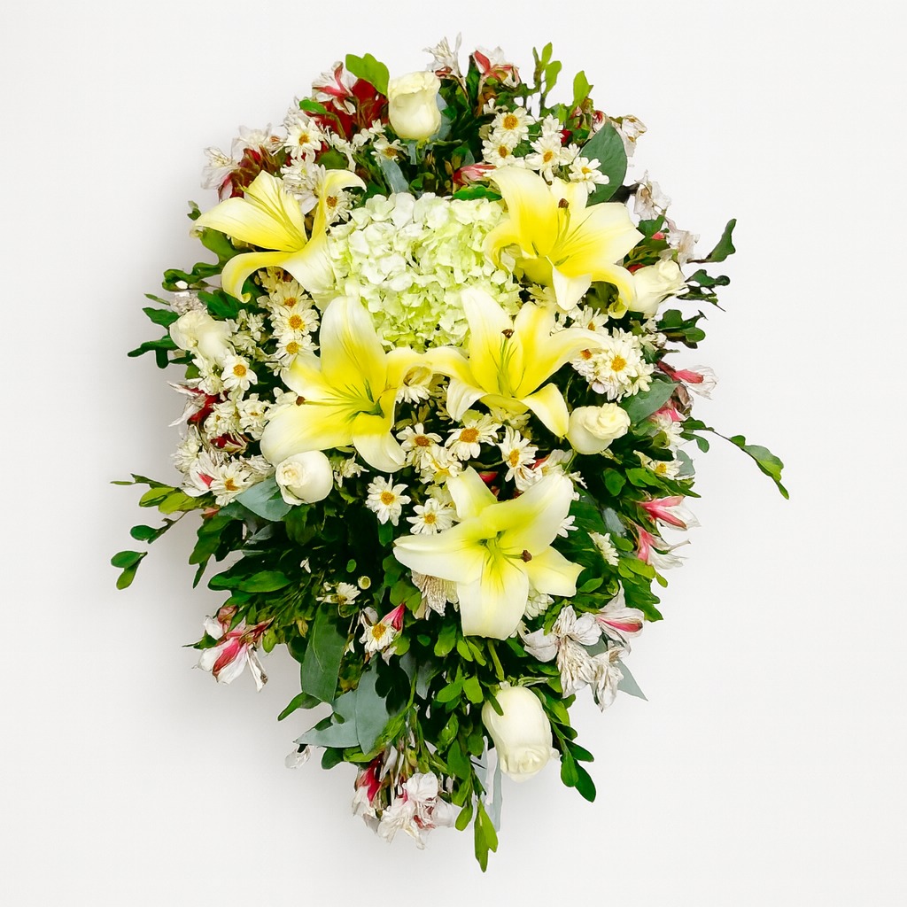 Este elegante arreglo floral ha sido creado como un sincero tributo de amor y respeto.