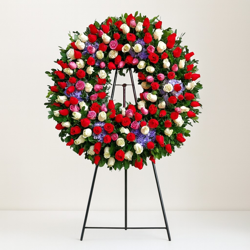Este diseño es ideal para rendir un homenaje lleno de respeto y cariño, reflejando un equilibrio perfecto entre la delicadeza de sus flores y la solemnidad del momento.