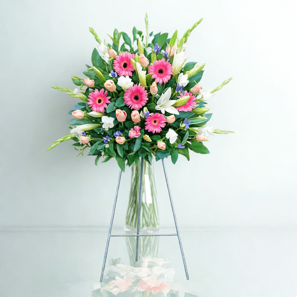 Este majestuoso trípode floral ha sido diseñado como un homenaje imponente, vibrante y lleno de vida.