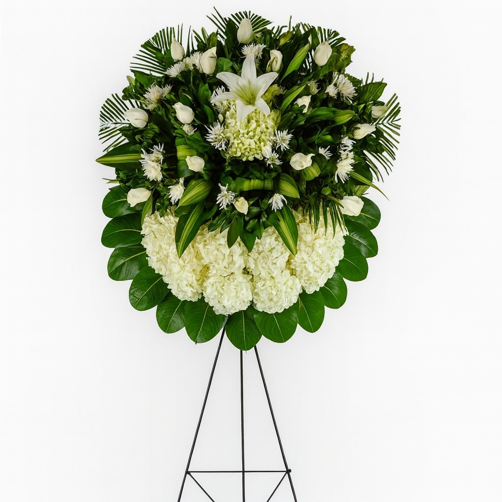Este elegante arreglo floral en trípode ha sido diseñado como un último homenaje lleno de serenidad, luz y gratitud.