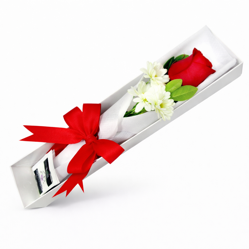 Presentado con papel especial y lazo decorativo, resaltando su volumen, belleza y acabado premium.