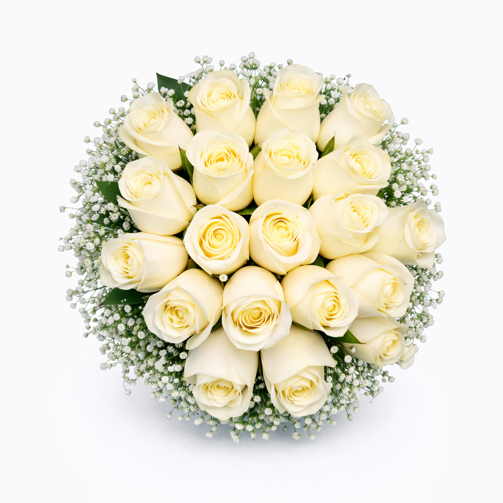 • Flores: 20 rosas blancas